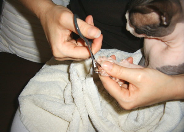 Als laatste punt in hun verzorging is het nodig om de overtollige talg te verwijderen van hun nagels en nagelriempjes. Door dagelijks bezoek aan de kattenbak kunnen feacale bacteriën daar dan ook achterblijven en met de warmte tussen de tenen kan dat heel vlug gaan stinken!